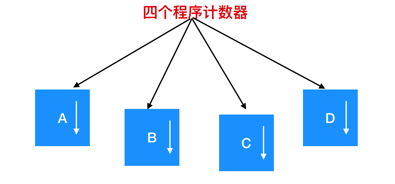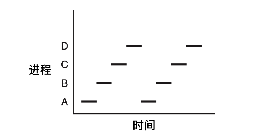 从下图我们可以看到,在观察足够长的一段时间后,所有的进程都运行了,**但在任何一个给定的瞬间仅有一个进程真正运行**。