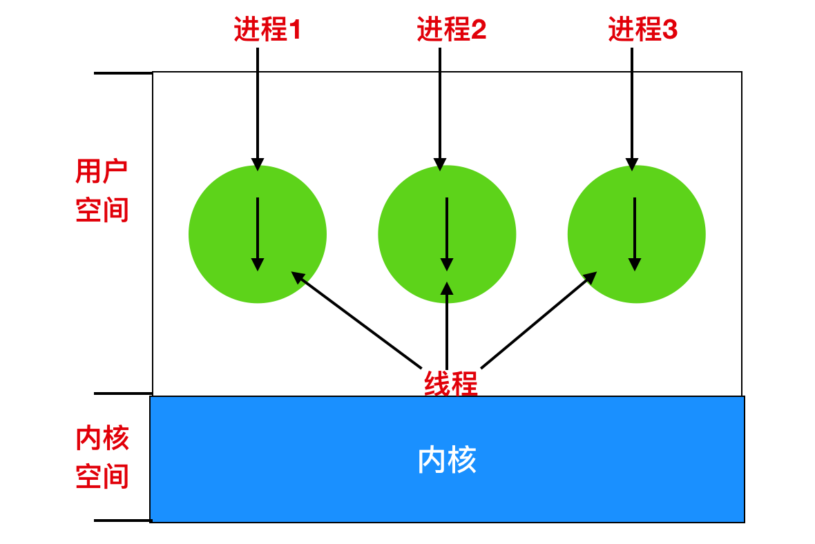 下图我们可以看到三个传统的进程,每个进程有自己的地址空间和单个控制线程。每个线程都在不同的地址空间中运行