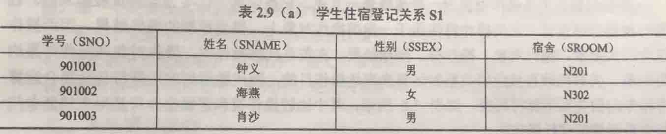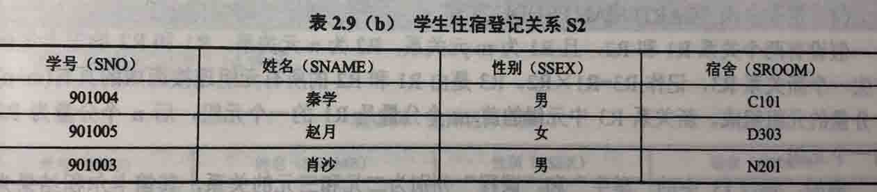 如表2.9所示,给出了两个有关学生住宿登记的关系S1和S2,下面以此为例介绍传统的集合运算。