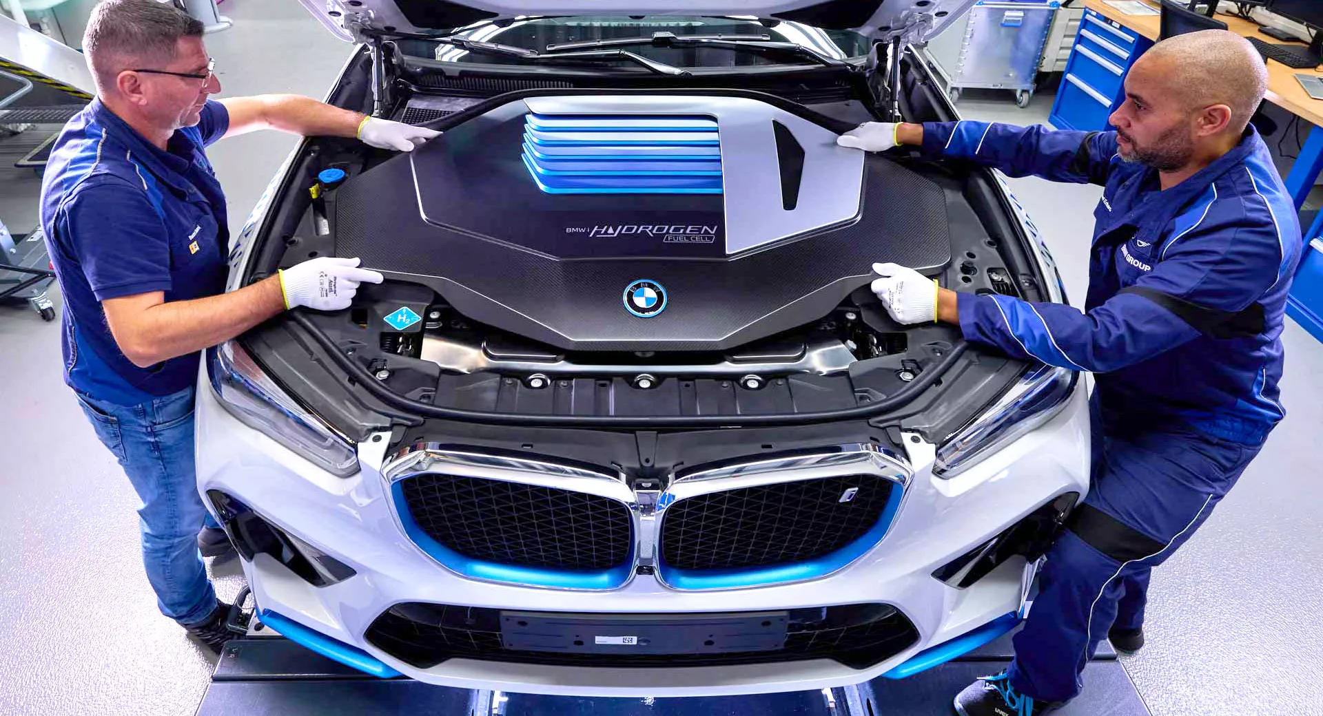 从宝马位于南卡罗来纳州斯帕坦堡的工厂运往德国,并安装了新地板,以容纳中央通道和后座下方的两个氢气罐。燃料电池本身由宝马在其加兴工厂制造,位于发动机所在的引擎盖下方,而与电池一起内置于后轴的电动机则源自现有宝马电动和插电式混合动力汽车上安装的组件,该公司声称。