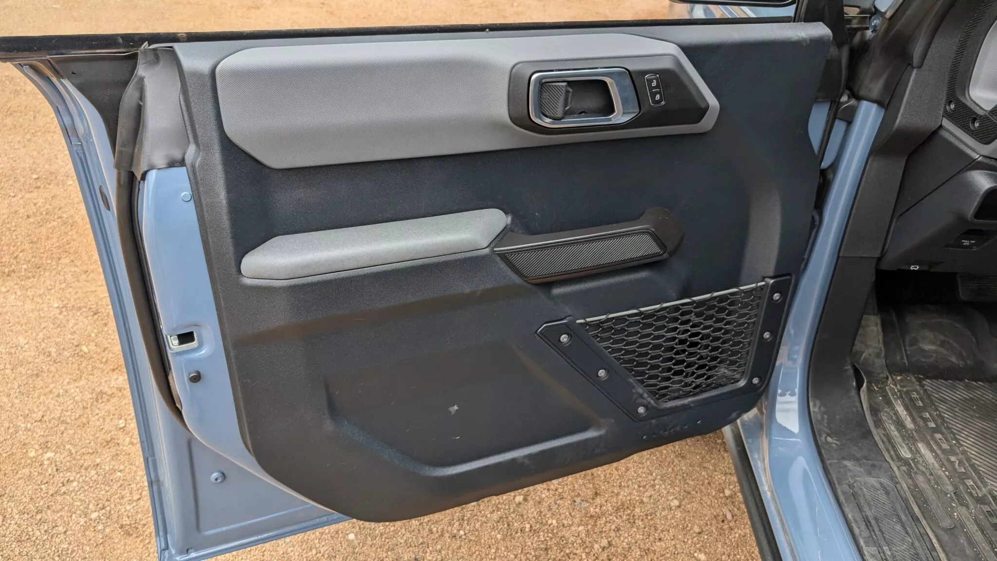 人们可能不太习惯 Bronco 内部的风噪。那些喜欢宁静平和的驾驶体验的人在这里不会真正体会到。尽管车顶内衬隔音效果好,但当车速超过 35 英里/小时(56 公里/小时)时,风吹过面板的声音还是可以听见的。那些拥有单件式硬顶的人可能会有不同的体验,但我怀疑它不会好多少。