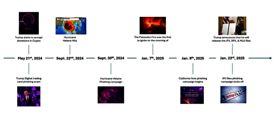 这一情况与Hackread.com此前报道的网络诈骗事件相似,网络犯罪分子总是会迅速利用全球重大事件进行攻击,例如: