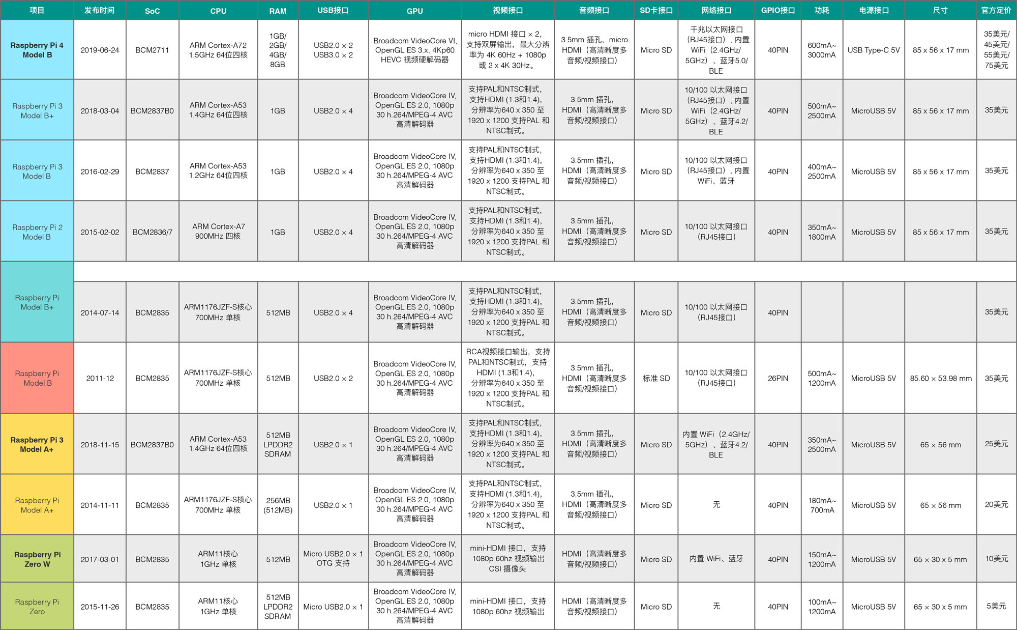Raspberry Pi 树莓派版本代号大全